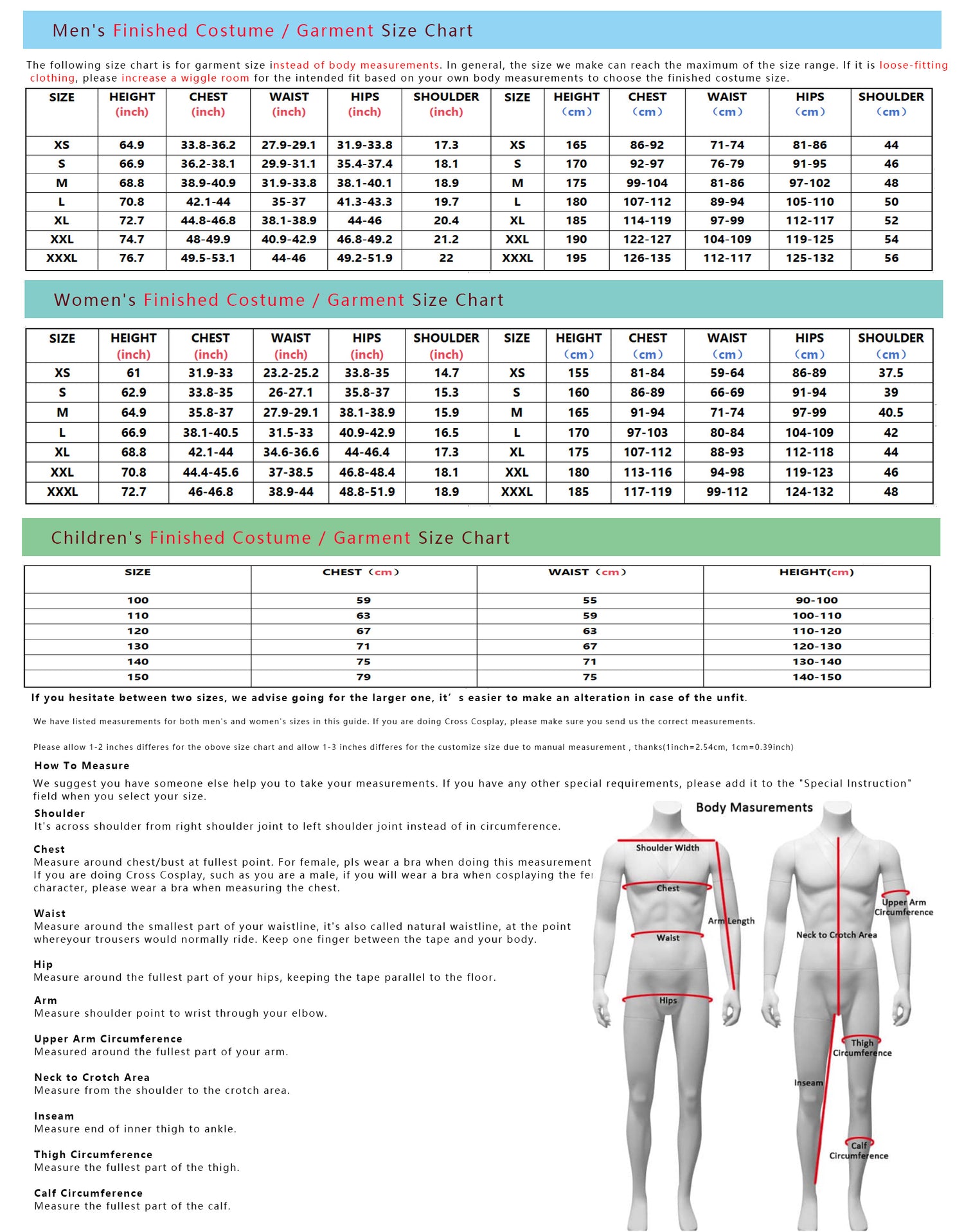 - Size Guide: Please according to our table to choose your size. If you need a special size customization service, please contact us.